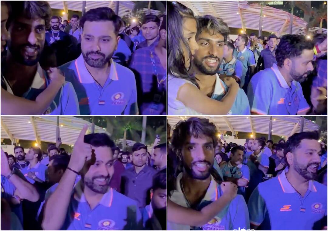 Mumbai Indians batter Rohit Sharma was seen grooving to the song '100 Million' by singers Divine and Karan Aujla at an MI event. MI batter Suryakumar Yadav was also present, while batter Tilak Varma was seen holding Rohit's daughter Samaira beside him. MI shared the video, captioning it, "Look, look, Hitman is here!"